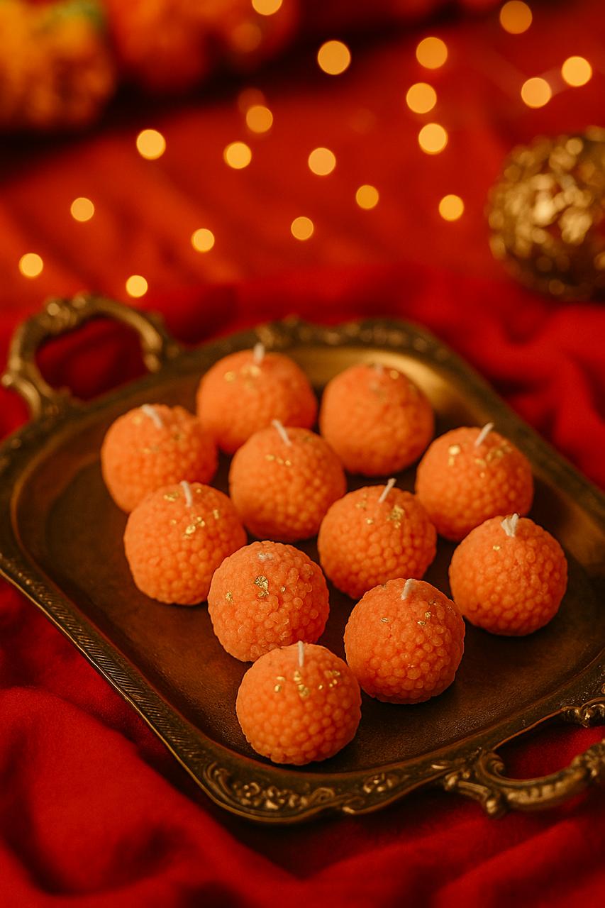 SET OF 4 LADDU CANDLE Laddu candle A playful twist on tradition! This laddu-shaped candle...