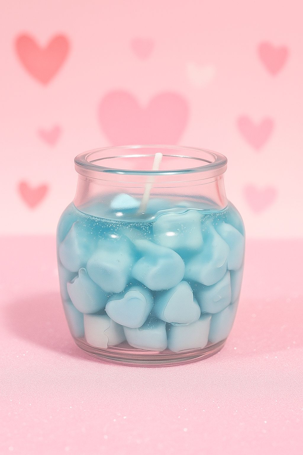 A sweet symbol of love captured in a jar. This heart-shaped candle with crystal-clear gel...