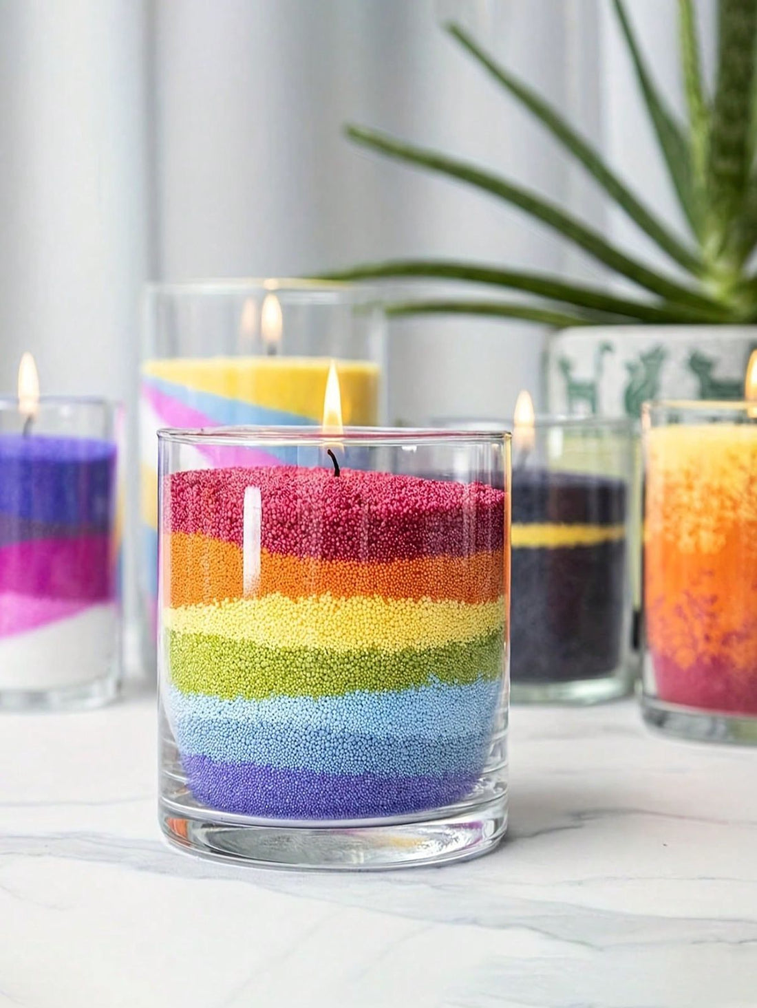 “Experience the beauty of colour and candlelight together. Our Colourful Sand Wax Jar Candle is...